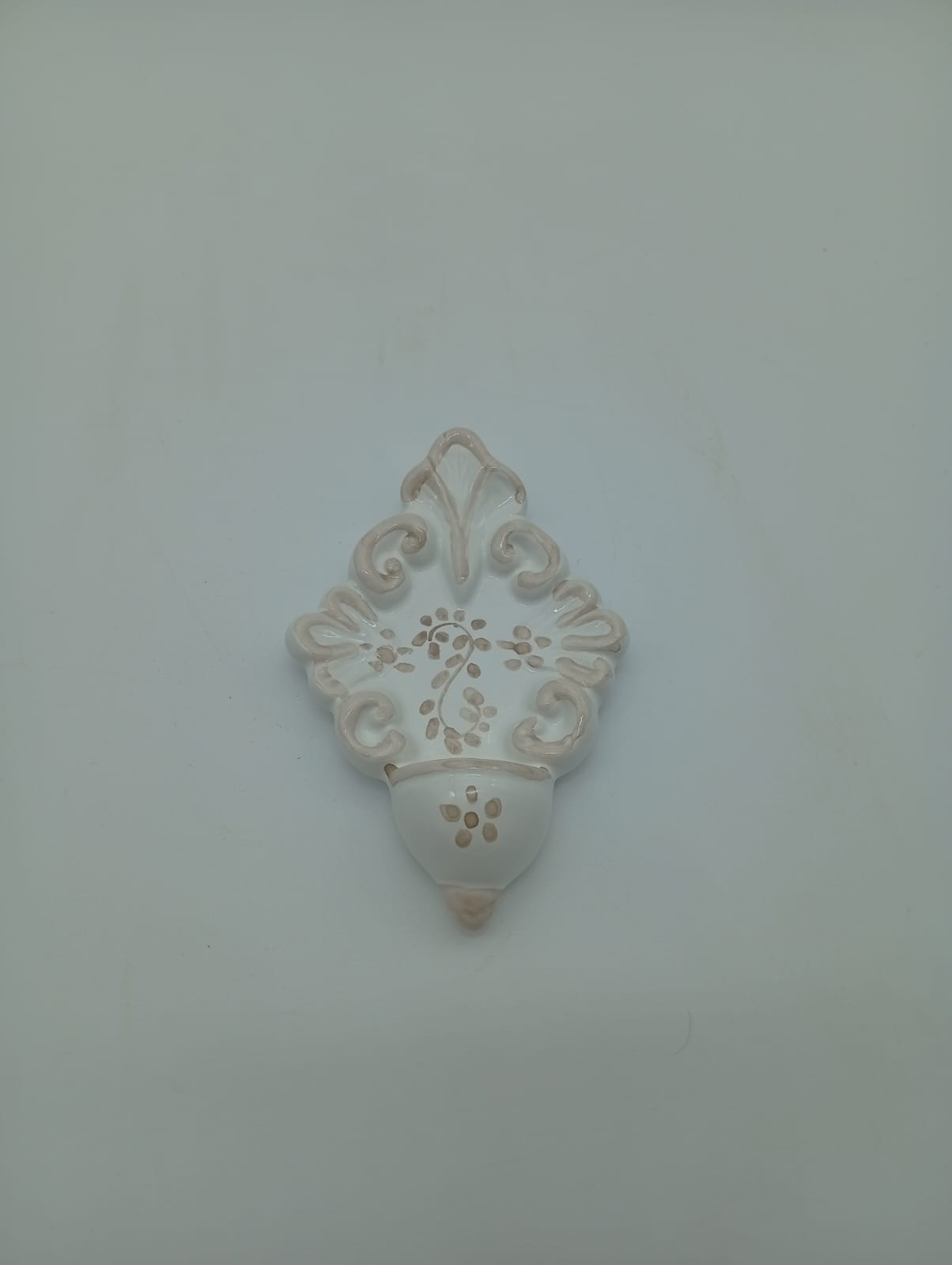 Acquasantiera in ceramica interamente decorata a mano Colore Tortora