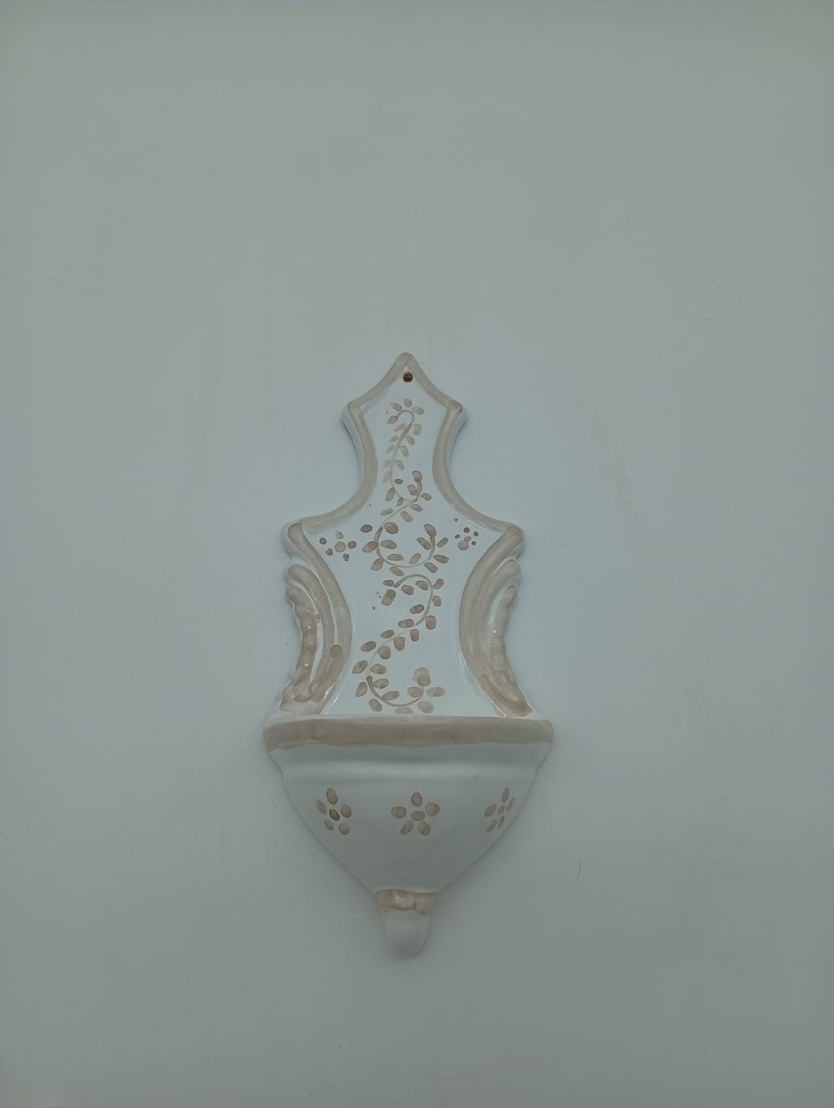Acquasantiera in ceramica interamente decorata a mano Colore tortora
