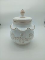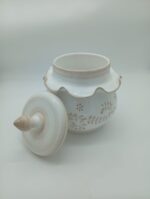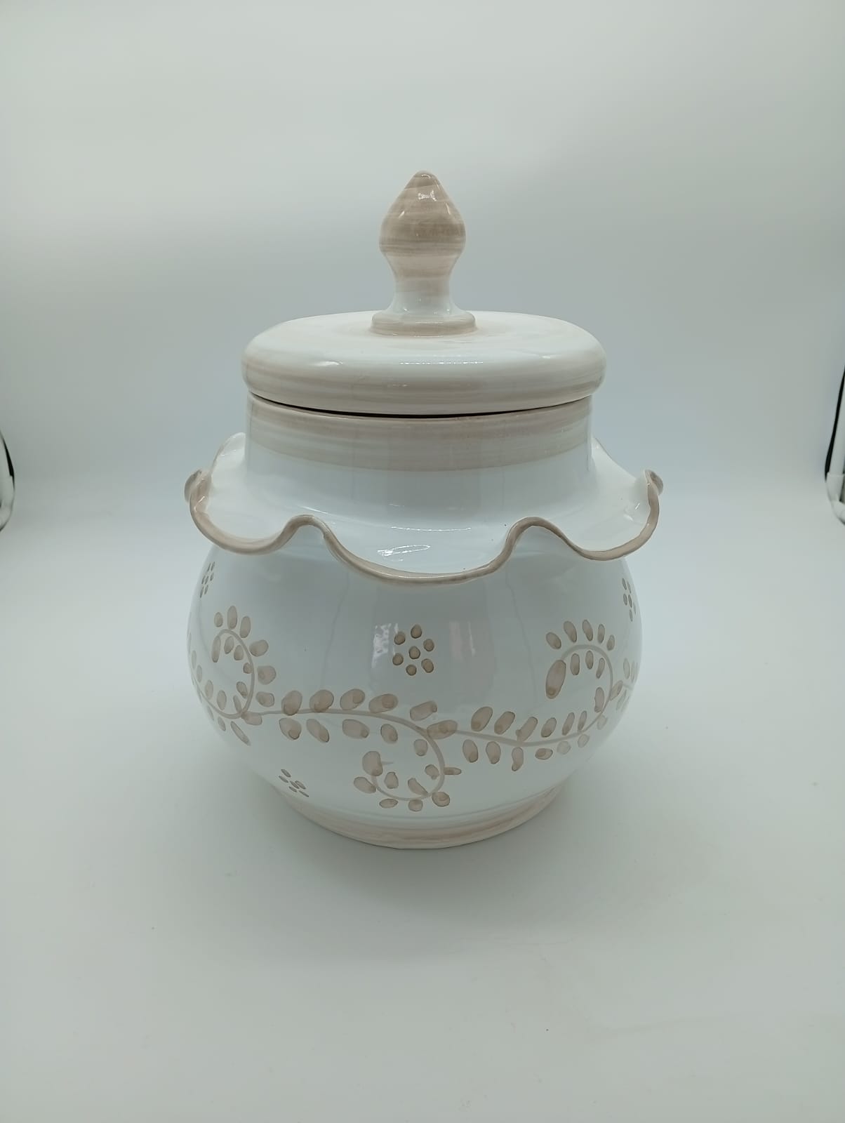 Biscottiera in ceramica interamente lavorata e dipinta a mano colore Tortora