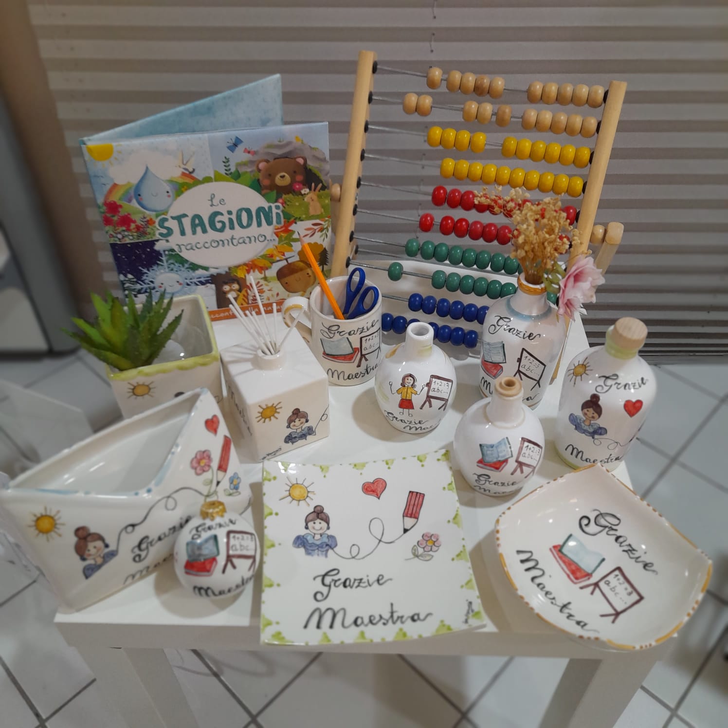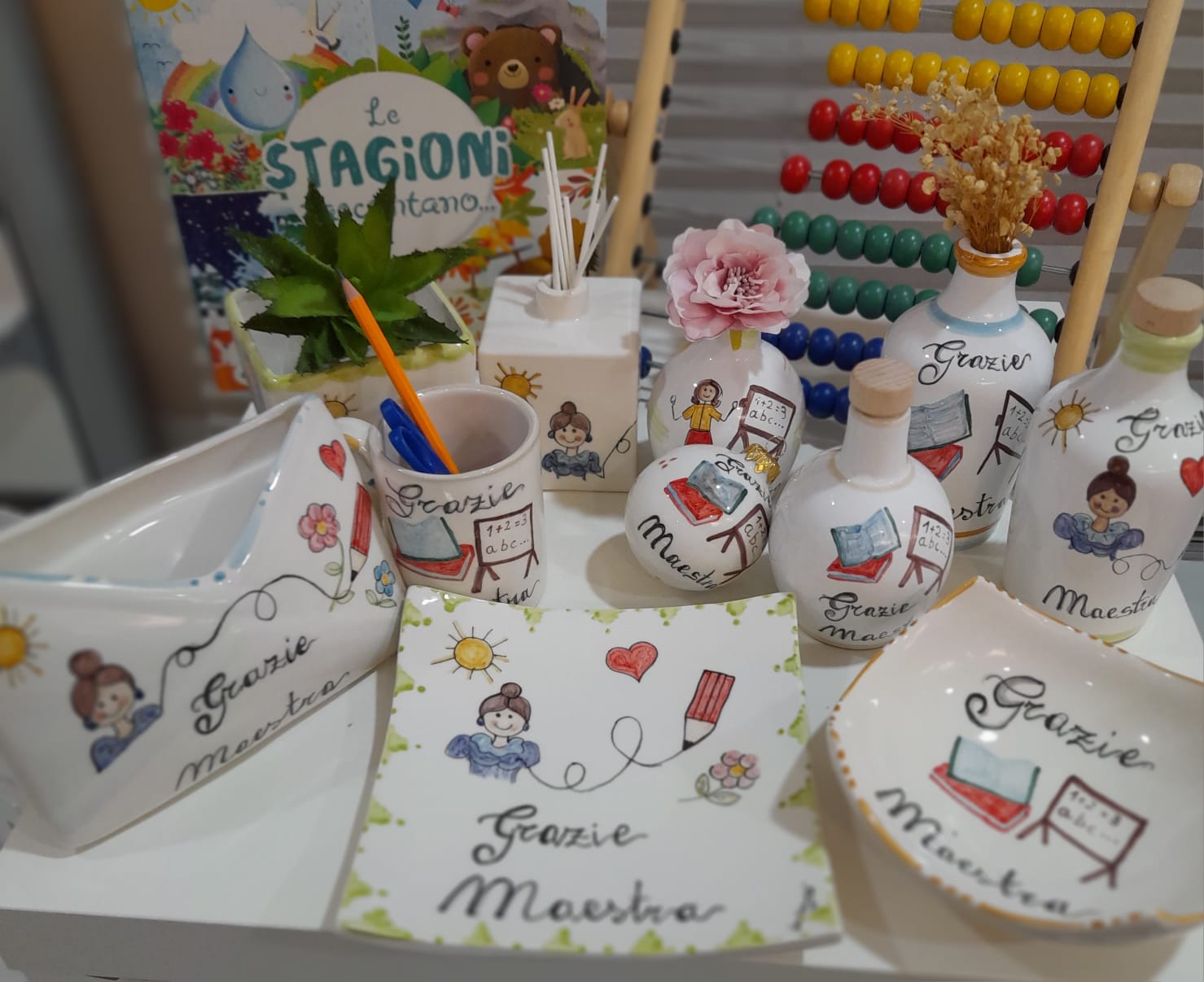 Vasta Gamma in ceramica di articoli da Regalo  per le Maestre tutte dipinte a mano