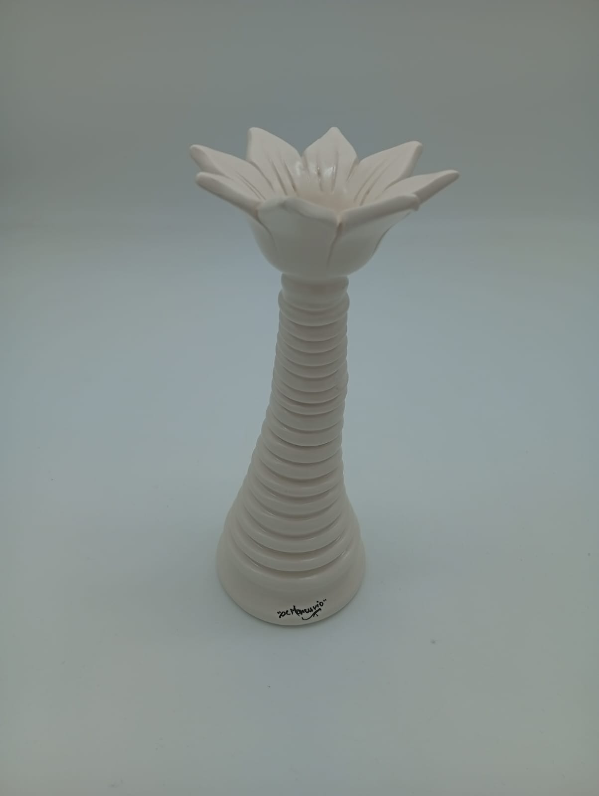 Porta Candela a Fiore H.20 cm interamente lavorato a tornio  Colore Tortora Satinato