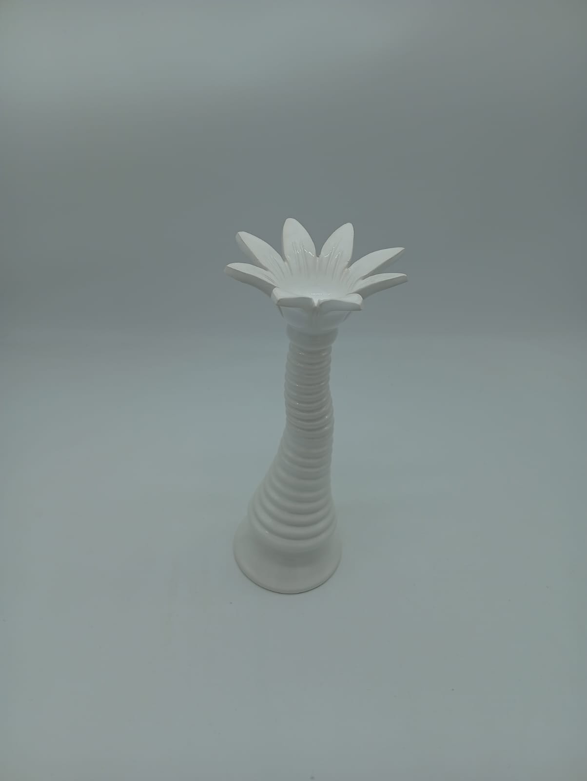Porta Candela a Fiore H. 20 cm interamente lavorato a tornio  Colore Bianco Satinato