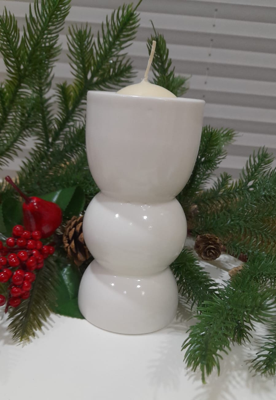 Porta Candela in ceramica Bianco interamente artigianale H.15 cm diam.10 cm