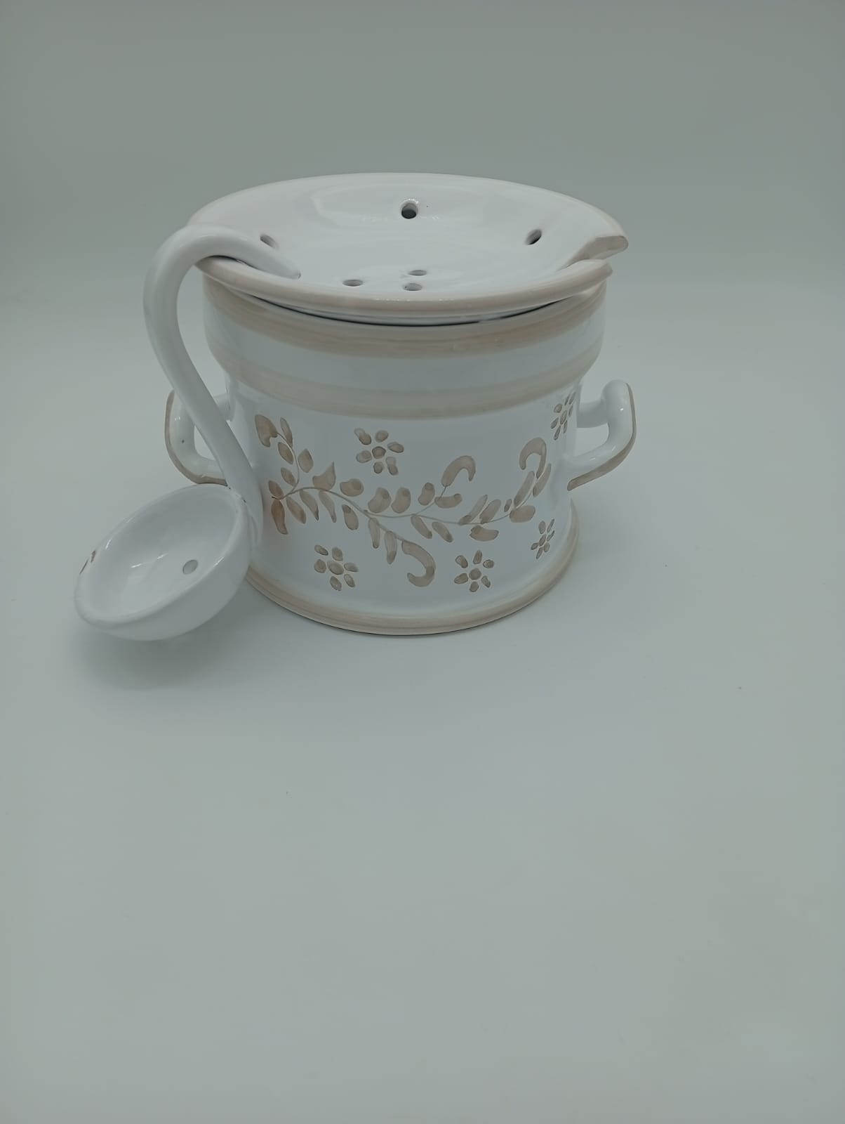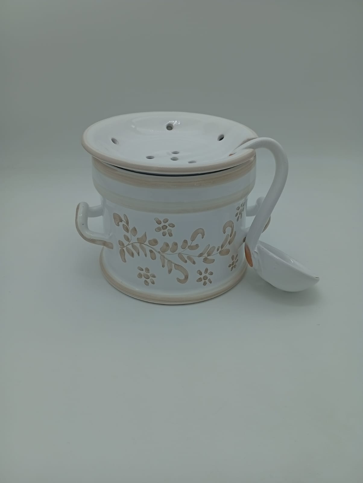 Scola Mozzarella Cilindrico in ceramica interamente decorata a mano di colore tortora