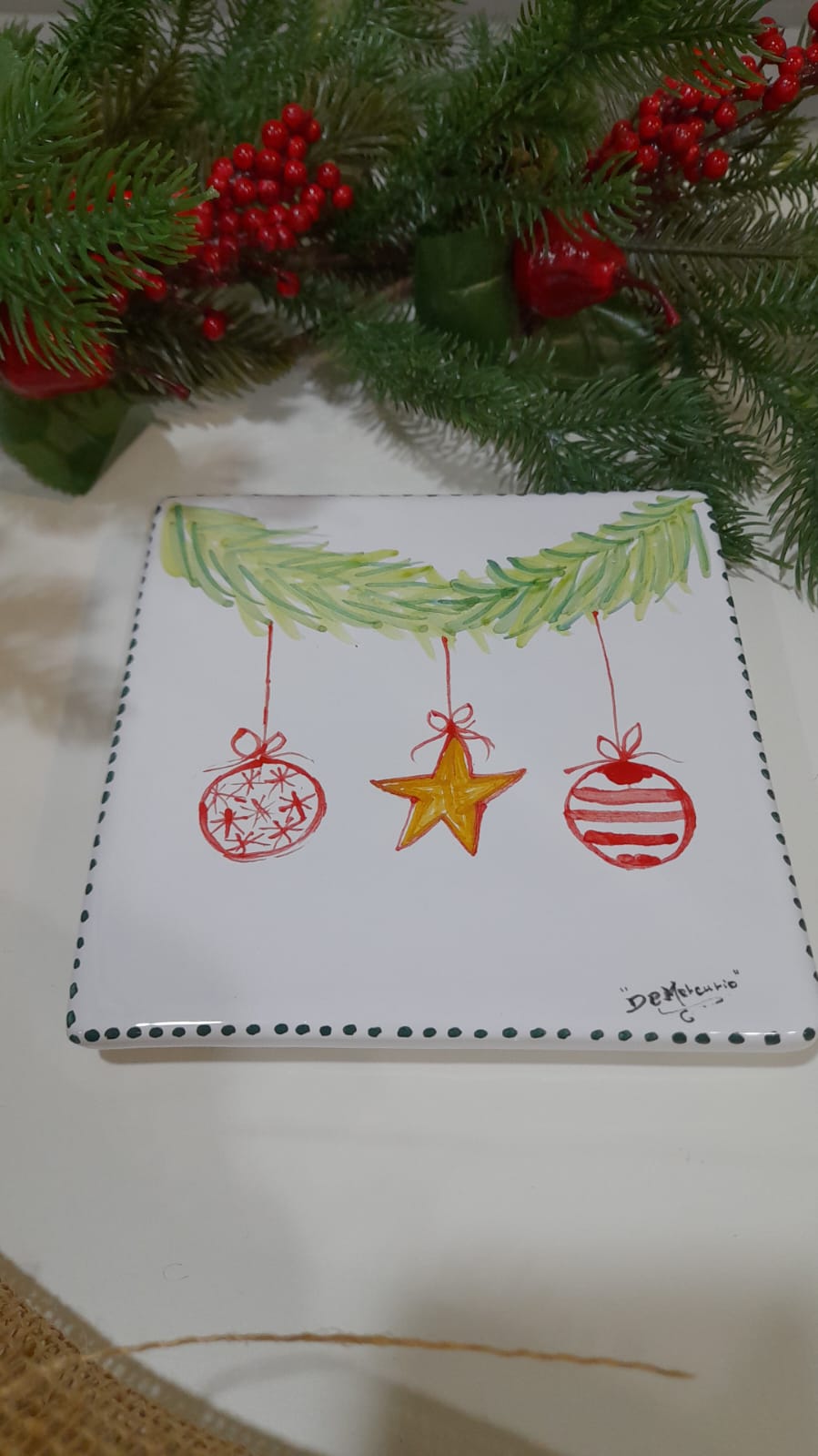 Sotto Pentola in Ceramica 16 x16 cm con decoro natalizio tutto interamente decorato  a mano
