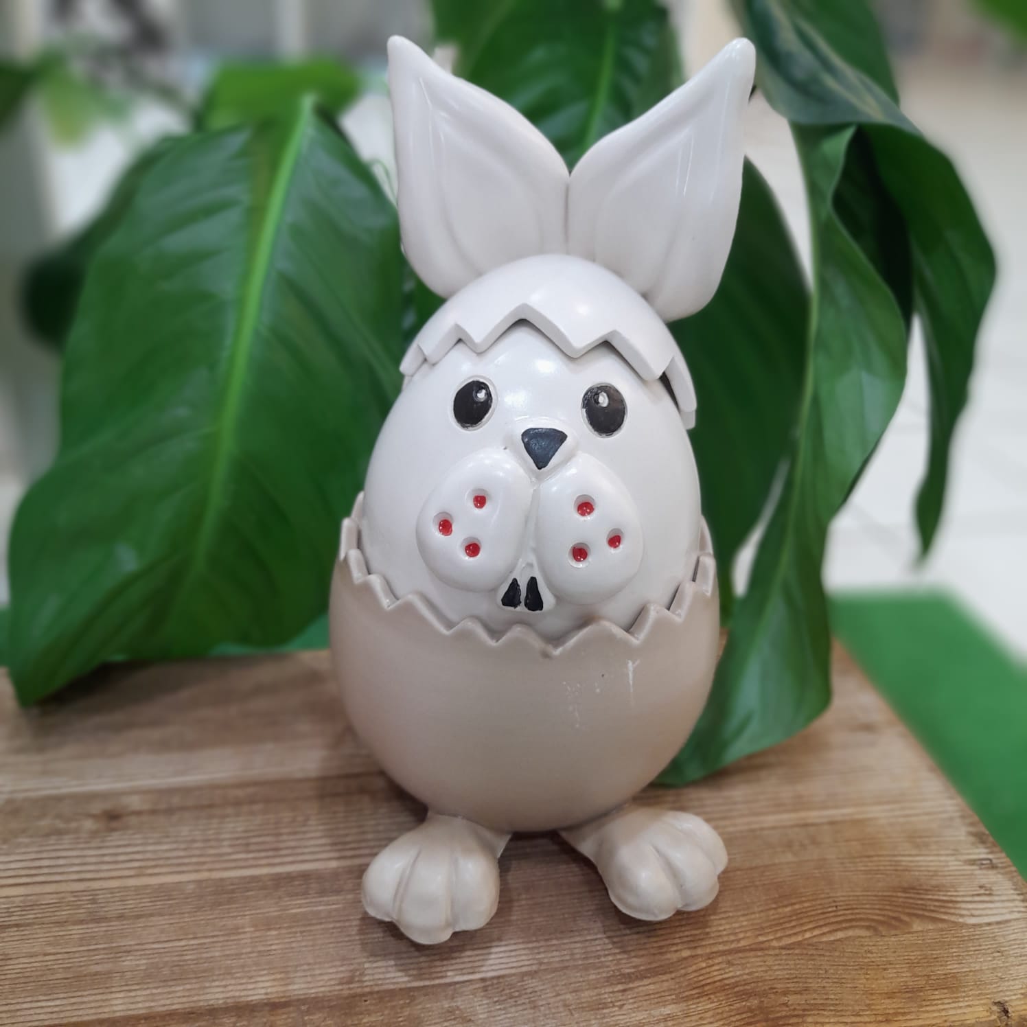 Uova a coniglietto interamente lavorato e dipinto a mano Colore Tortora e bianco Satinato