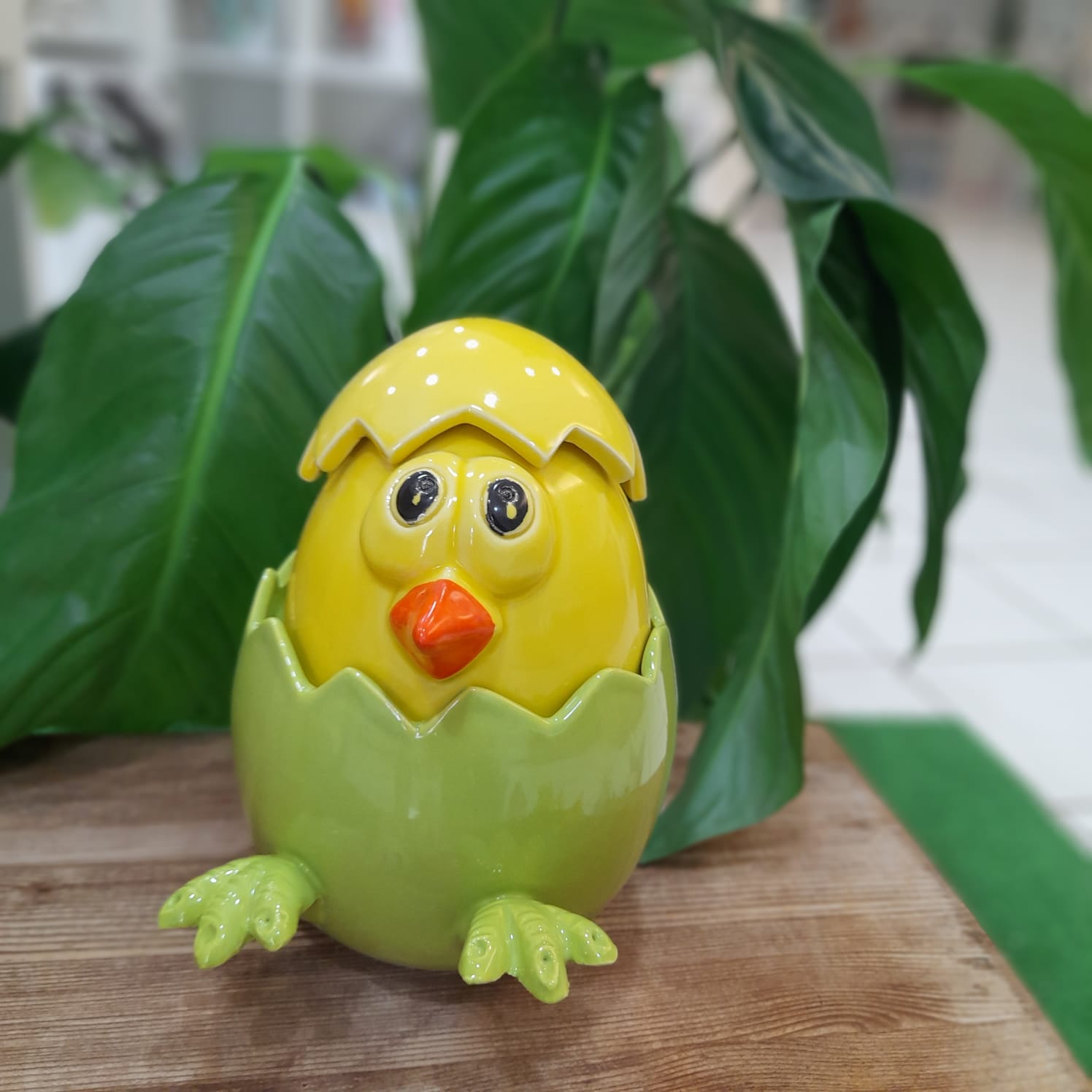 Uova Pulcino in ceramica interamente lavorato e decorato a mano Colore Verde Giallo