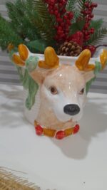 Vaso con Renna a Rilievo H.18 cm x diam. 22 cm interamente tutto decorato a mano