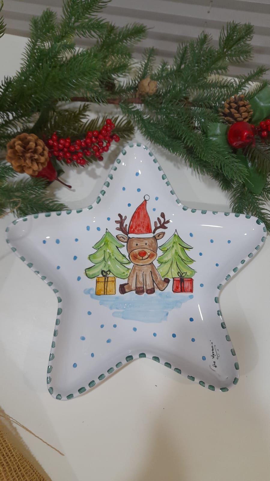 Vassoio in ceramica diam.31 cm decoro Renna interamente decorato a mano